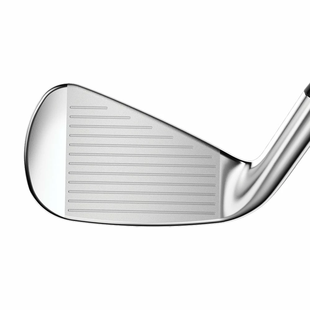 External MIM’d tungsten weighting positions CG for optimal trajectory and launch, with a long blade length and wider sole to enhance forgiveness, turf interaction and subsequent control.