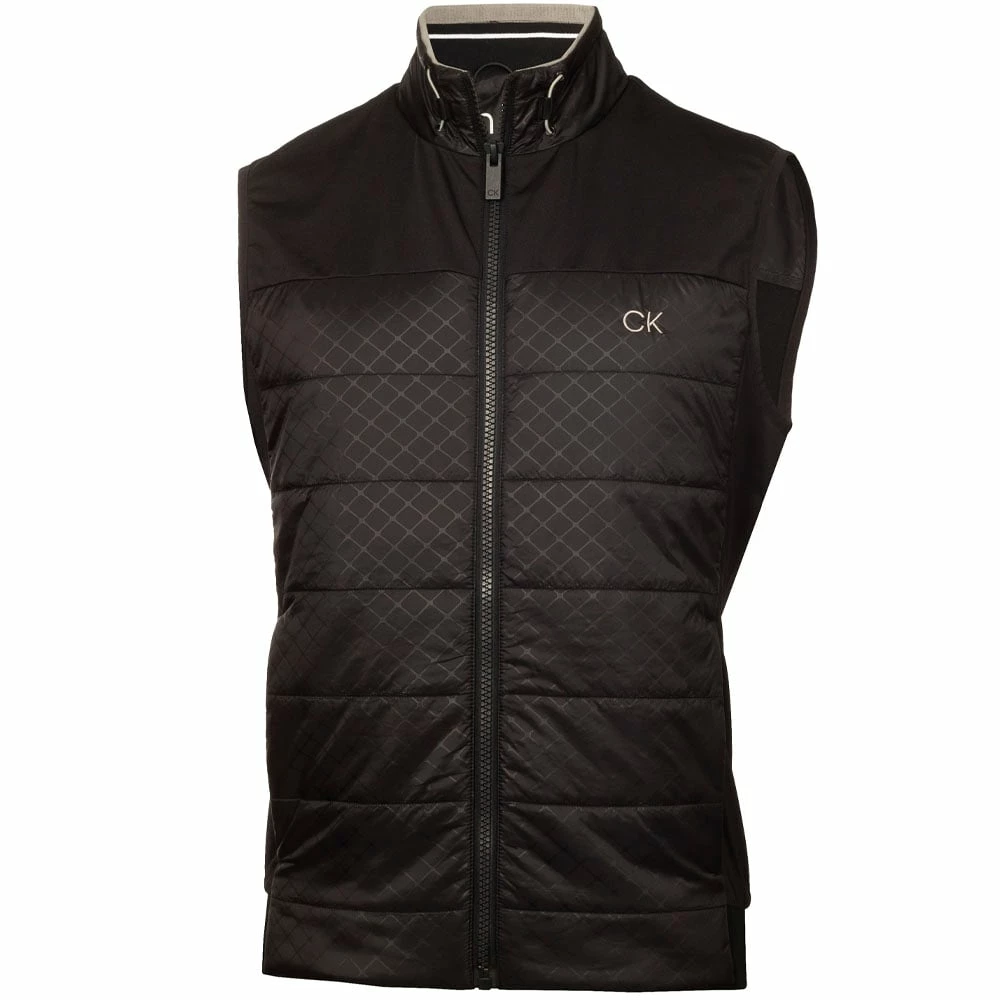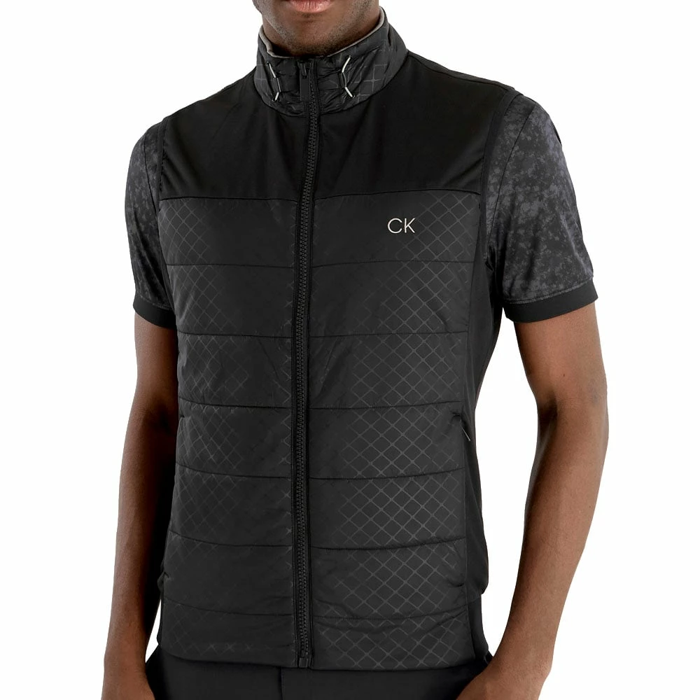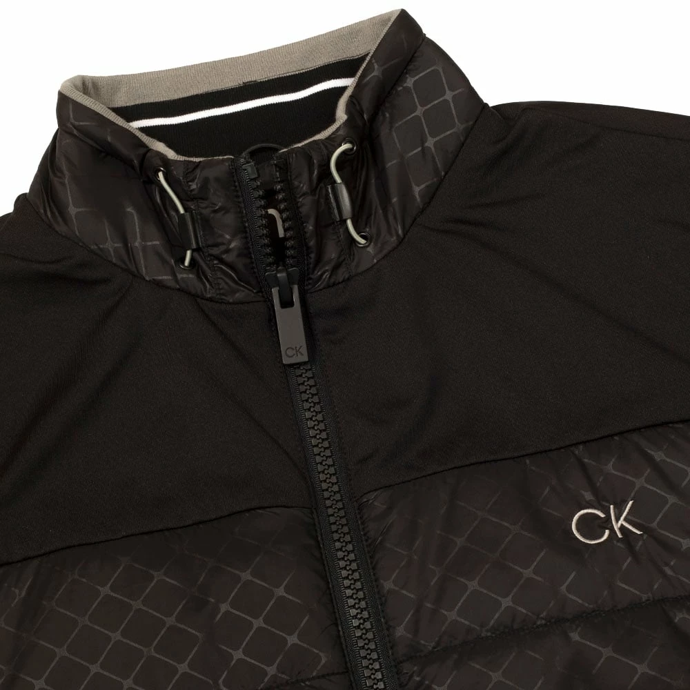The garment has an embroidered CK logo on the left chest with diamond print padding on the quilted front and collar.